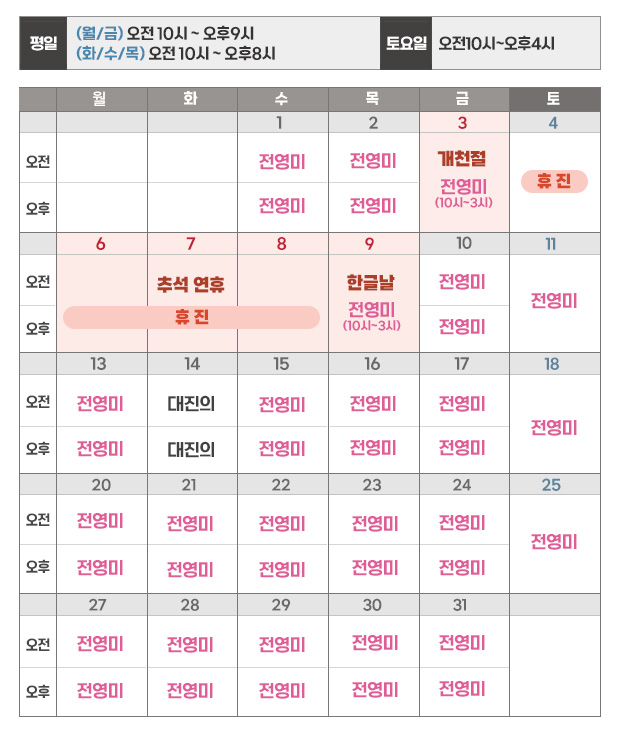 대표전화번호 안내평    일오전 9:30 ~ 오후 6:30
